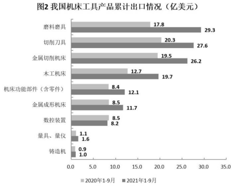 C.2021年1~9月,進(jìn)出口總額超過30億美元的機床工具產(chǎn)品有3種