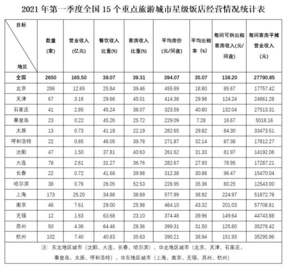 82.2021年第一季度15個重點旅游城市中,華北地區(qū)星級飯店平均營業(yè)收入最高的城市為:( )