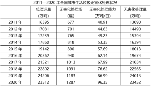 100.關(guān)于全國城市生活垃圾清運(yùn)和無害化處理狀況,能夠從上述資料中推出的是:( )
