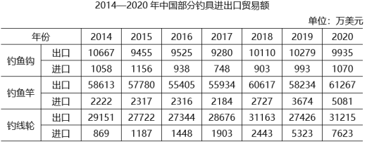A.釣魚竿進(jìn)口額 B.釣魚竿出口額