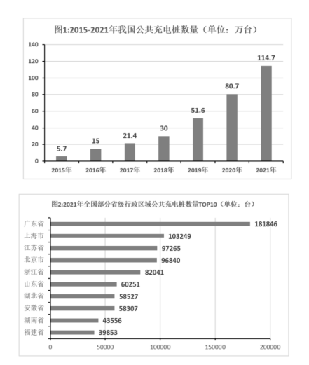B、2021年我國(guó)公共充電樁數(shù)量超過5萬臺(tái)的省級(jí)行政區(qū)域有7個(gè)