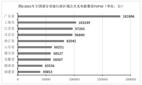 B.2021年我國(guó)公共充電樁數(shù)量超過(guò)5萬(wàn)臺(tái)的省級(jí)行政區(qū)域有7個(gè)