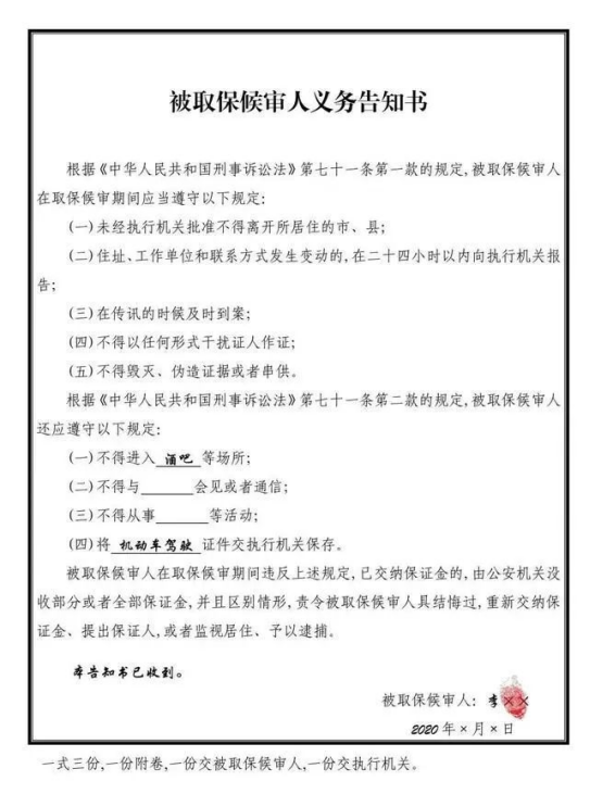 附:被取保候?qū)徣肆x務(wù)告知書(模板)制作參考