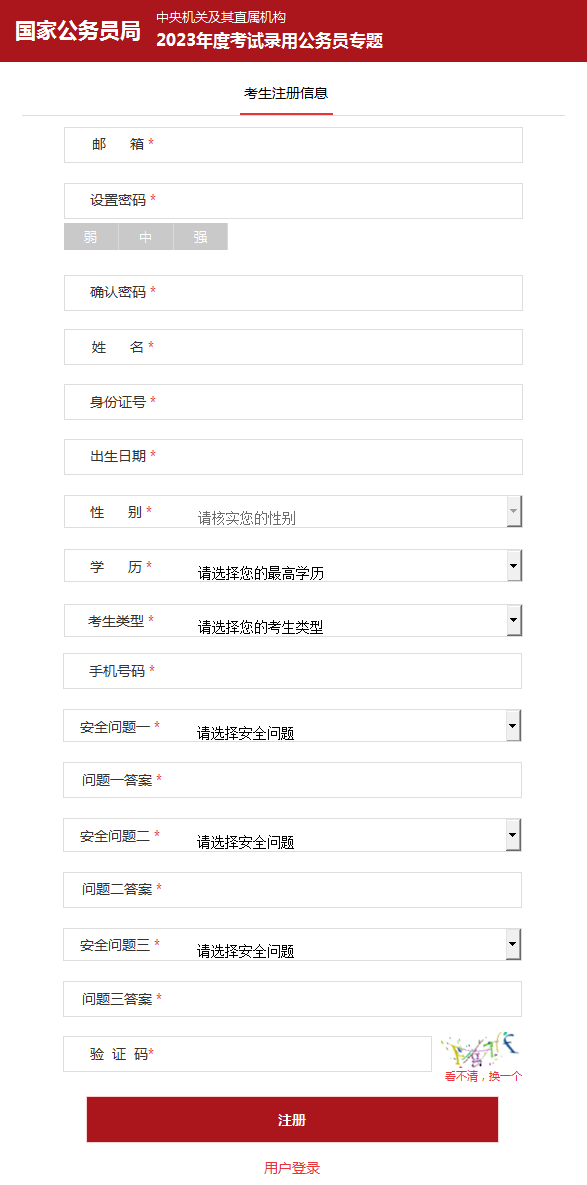 點(diǎn)擊“注冊(cè)新用戶(hù)”進(jìn)行注冊(cè)。提醒:不管你之前是否注冊(cè)報(bào)名過(guò)往年國(guó)考,這次報(bào)名都要重新注冊(cè),因?yàn)槭遣煌膱?bào)名系統(tǒng)。