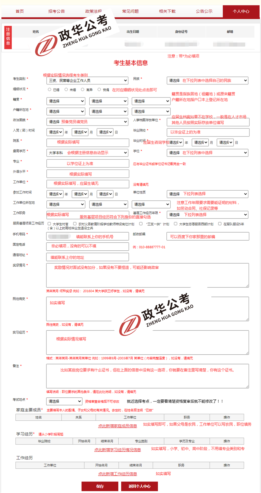 在正式選報(bào)職位前,要先填寫(xiě)完整考生基本信息。