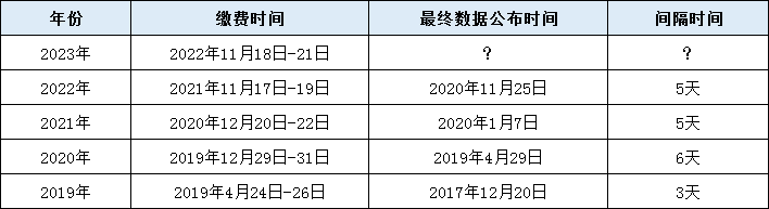 在這告訴大家,根據(jù)歷年情況來看繳費確認(rèn)階段后,一般在一周內(nèi)官方會發(fā)布繳費報名數(shù)據(jù)。以下是近幾年浙江省考繳費時間匯總: