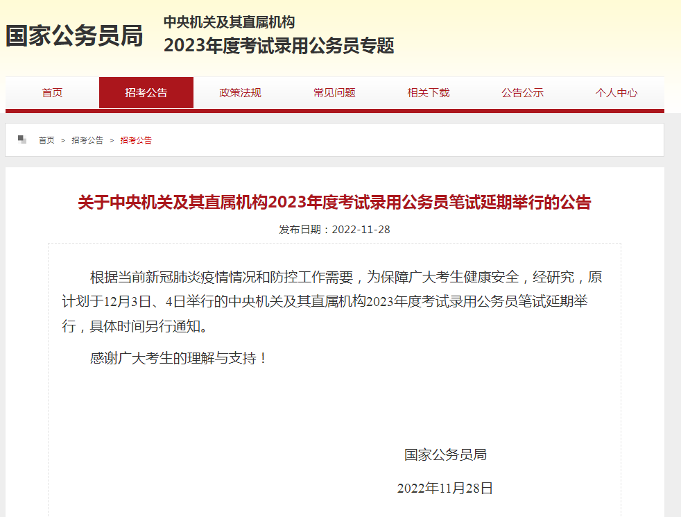 2023年國(guó)家公務(wù)員考試筆試延期舉行! 這可是歷年國(guó)考頭一回~
