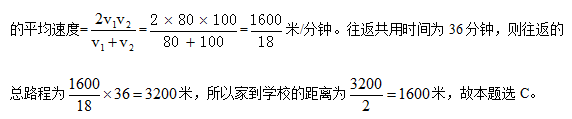例2:小偉從家到學(xué)校去上學(xué),先上坡后下坡。到學(xué)校后,小偉發(fā)現(xiàn)沒帶物理課本,他立即回家拿書(假設(shè)在學(xué)校耽誤時(shí)間忽略不計(jì)),往返共用時(shí)36分鐘。假設(shè)小偉上坡速度為80米/分鐘,下坡速度為100米/分鐘,小偉家到學(xué)校有多遠(yuǎn)?( )