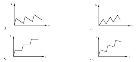 例1:甲和乙兩條自動(dòng)化生產(chǎn)線同時(shí)生產(chǎn)相同的產(chǎn)品,甲生產(chǎn)線單位時(shí)間的產(chǎn)量是乙生產(chǎn)線的5倍,甲生產(chǎn)線每工作1小時(shí)就需要花3小時(shí)時(shí)間停機(jī)冷卻而乙生產(chǎn)線可以不間斷生產(chǎn)。問以下哪個(gè)坐標(biāo)圖能準(zhǔn)確表示甲、乙生產(chǎn)線產(chǎn)量之差(縱軸L)與總生產(chǎn)時(shí)間(橫軸T)之間的關(guān)系?( )