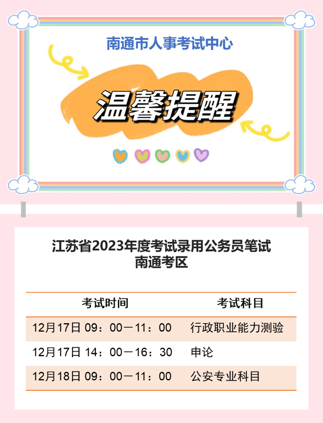 你最關(guān)心的疫情防控它來(lái)了!在通參加筆試的考生須按《江蘇省2023年度考試錄用公務(wù)員筆試考生新冠肺炎疫情防控告知書(shū)(2022年12月9日更新)》、《在通參加江蘇省2023年度考試錄用公務(wù)員筆試考生新冠肺炎疫情防控補(bǔ)充告知(2022年12月9日發(fā)布)》相關(guān)要求做好準(zhǔn)備,考試當(dāng)天需要: