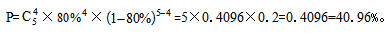 例1:某籃球運動員做投籃練習,假設每兩次投籃結果不會互相影響,每次投中的概率是80%,該運動員連續(xù)投籃五次其中有四次投中的概率是( )。
