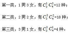 因此總的方法數(shù)采用分類相加,共:12+18+4=34種。