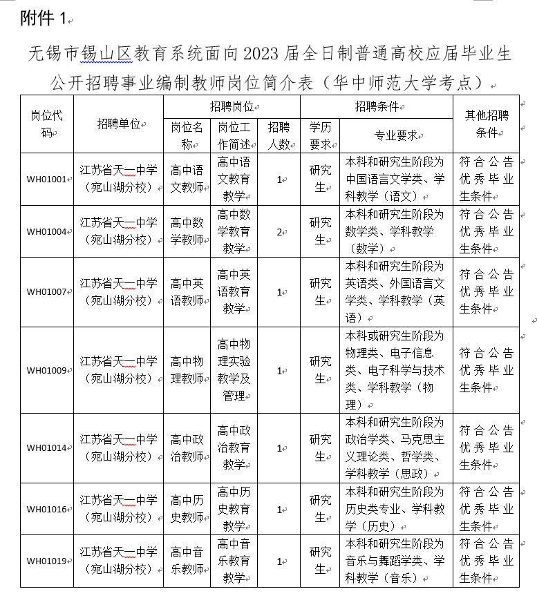 江蘇省天一中學公開招聘2023年事業(yè)編制教師公告(錫山區(qū)校招-華中師大考點)