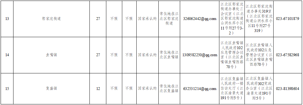 8. 根據(jù)專職網(wǎng)格員工作性質(zhì),報考人員常住地原則上在報考崗位所在鎮(zhèn)街范圍內(nèi),具體要求見《重慶市江北區(qū)2023年專職網(wǎng)格員招聘職位表》。