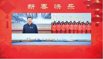 2023年1月18日,中共中央總書記、國家主席、中央軍委主席習(xí)近平在北京通過視頻連線看望慰問基層干部群眾,向全國各族人民致以新春的美好祝福。這是習(xí)近平通過視頻連線,同塔里木油田公司輪南油氣儲運中心西氣東輸?shù)谝徽究死瘹鈪^(qū)員工親切交流。新華社記者李濤/攝