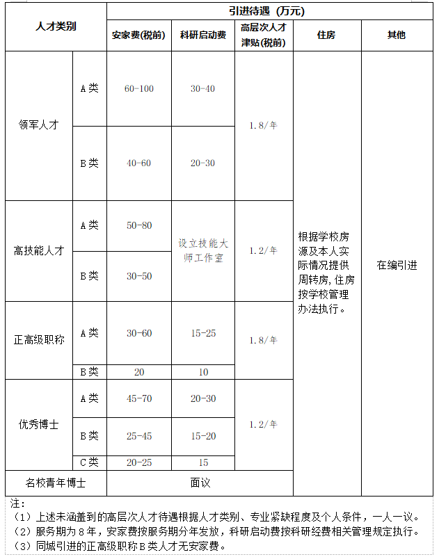 4.年齡條件:具有正高級專業(yè)技術(shù)職稱年齡不超過50周歲,即1973年1月1日以后出生,且具有本科及以上學(xué)歷;博士研究生(含學(xué)歷和學(xué)位)年齡不超過40周歲,即1983年1月1日之后出生;具有相應(yīng)人才稱號的高技能人才須為碩士研究生及以上,同時為副高級以上職稱且年齡不超過45周歲,即1978年1月1日之后出生。