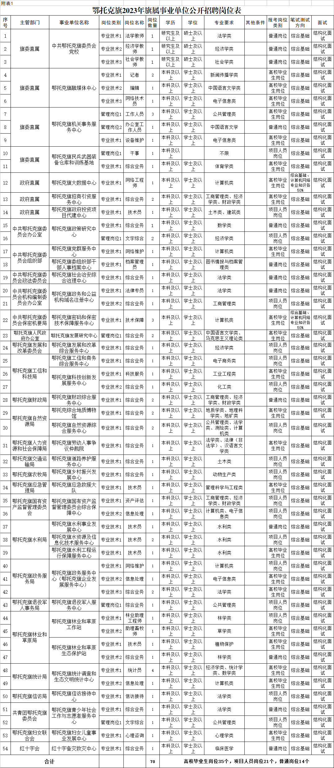 附件1:鄂托克旗2023年旗屬事業(yè)單位公開(kāi)招聘崗位表