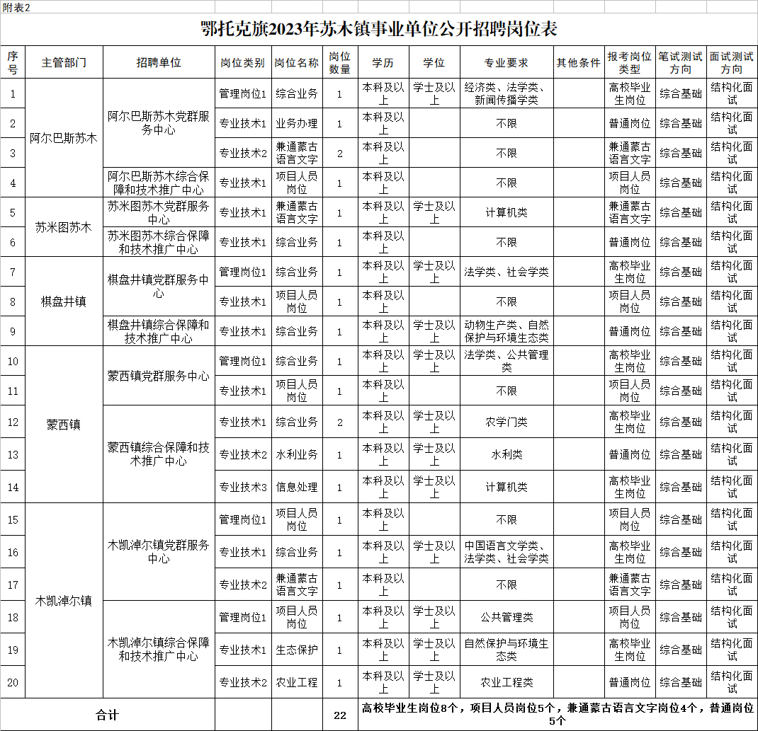 附件2:鄂托克旗2023年蘇木鎮(zhèn)事業(yè)單位公開(kāi)招聘崗位表