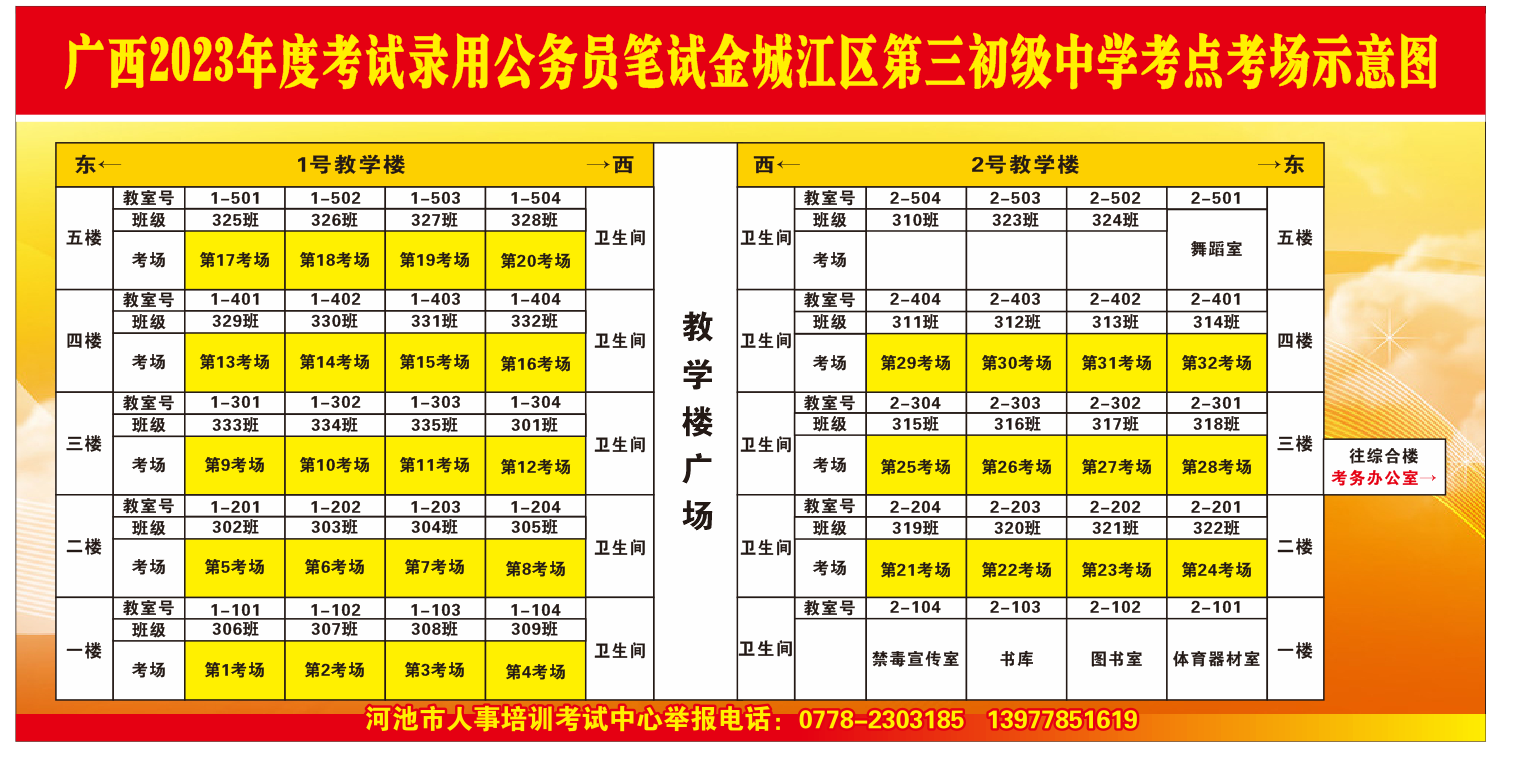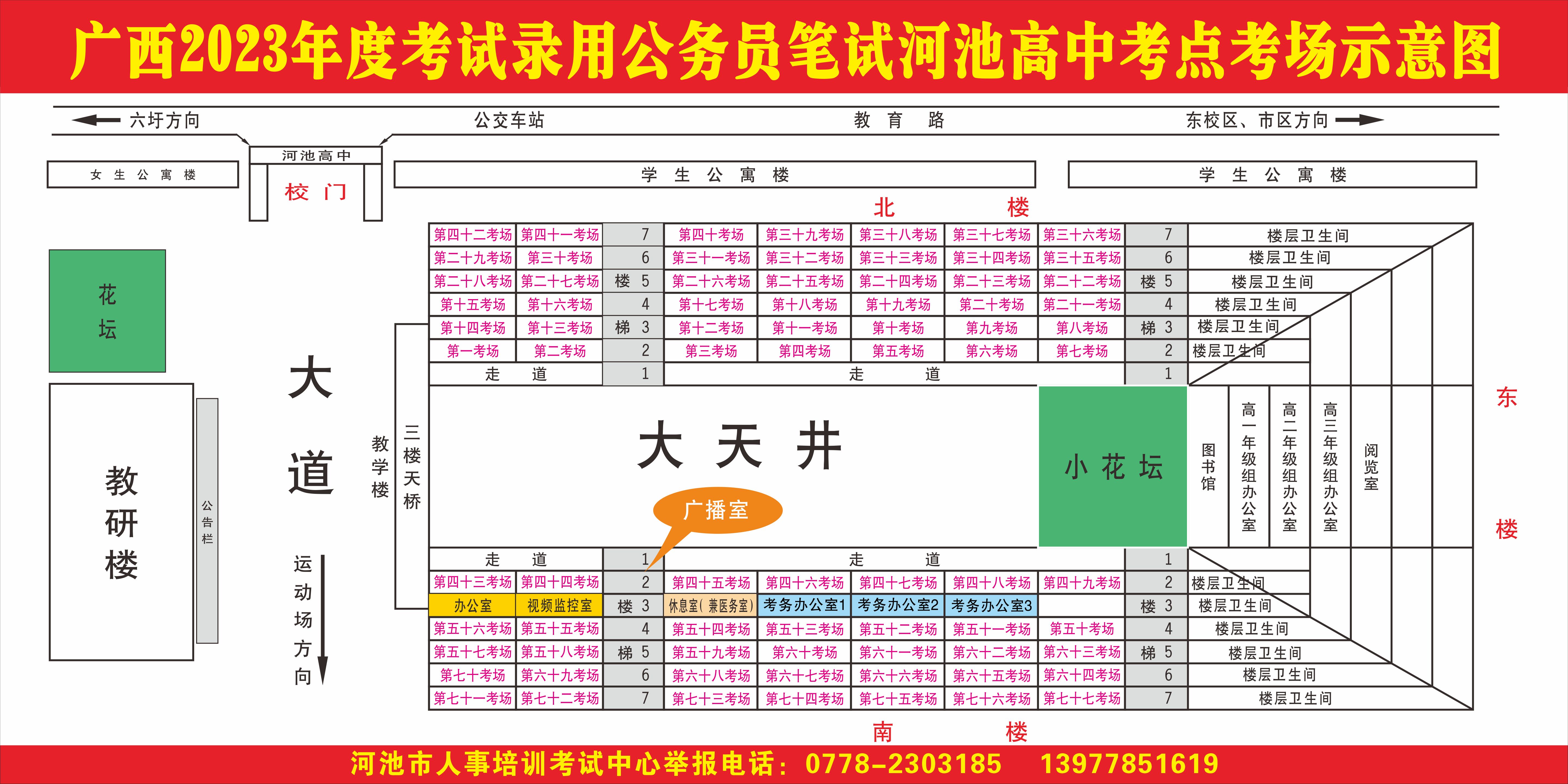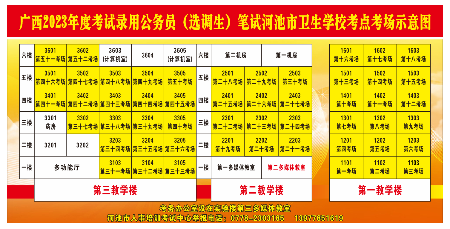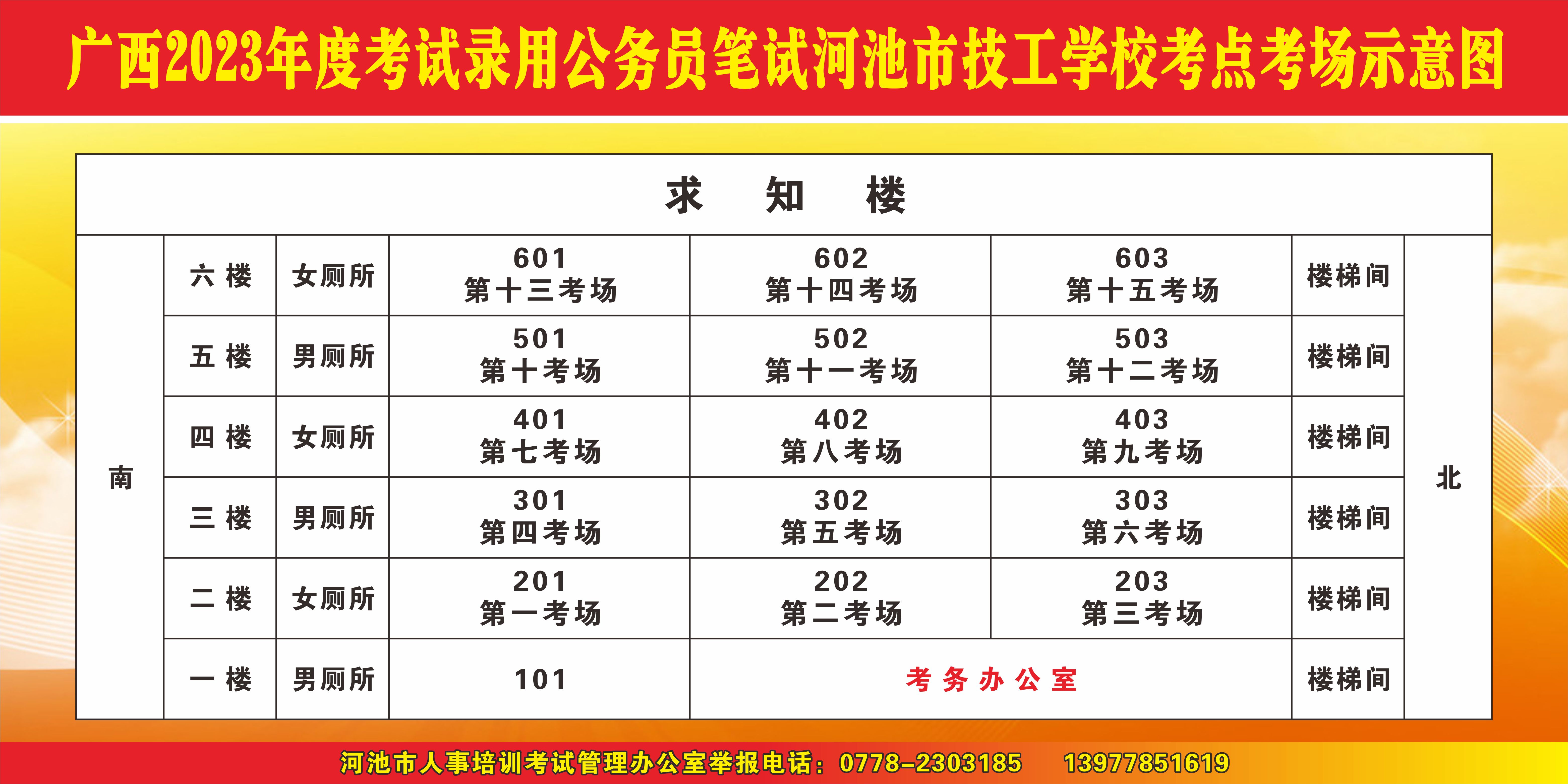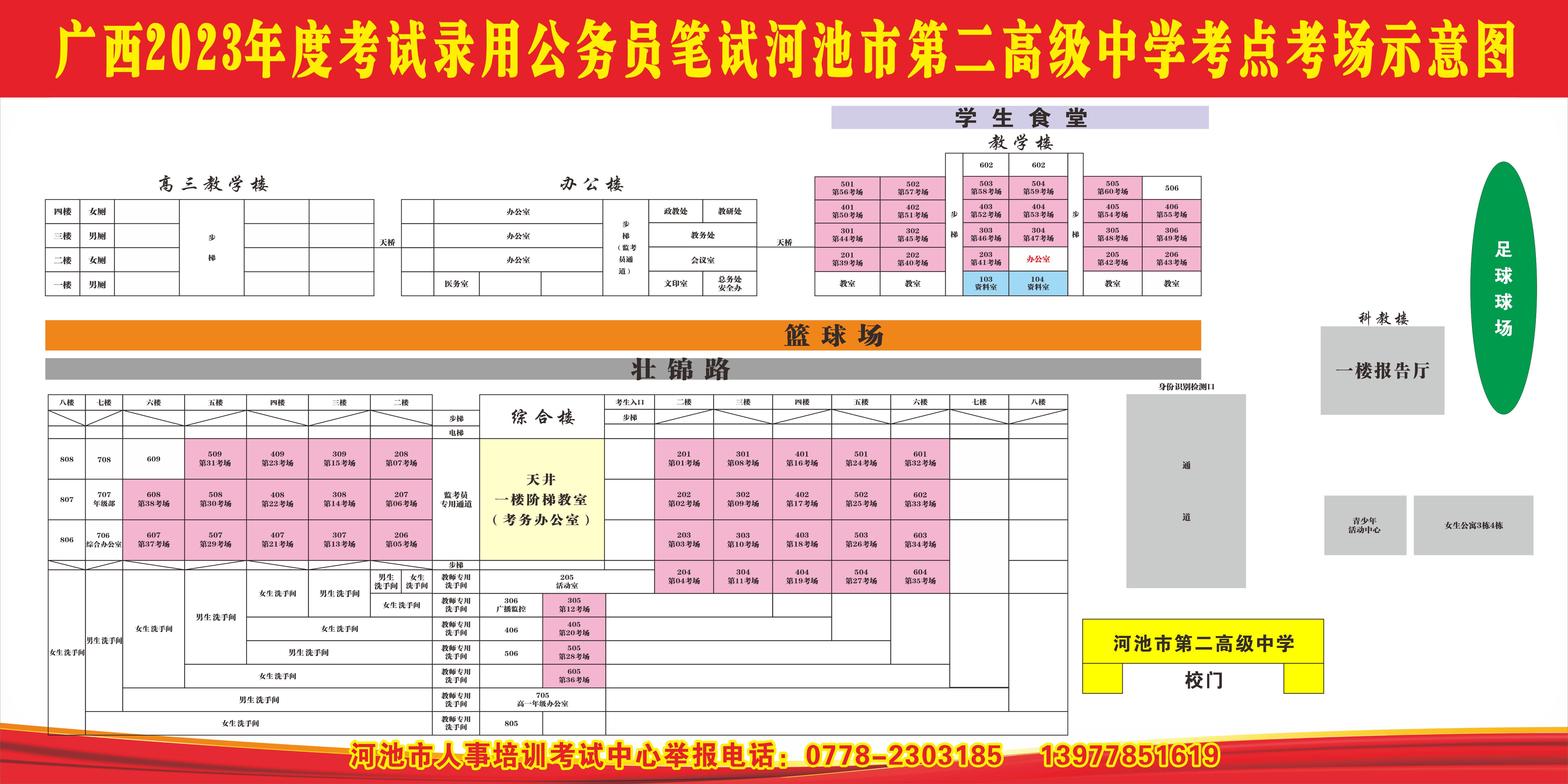 廣西2023年度考試錄用公務(wù)員(選調(diào)生)公共科目筆試將于2月25日(星期六)舉行,河池考區(qū)共有12810人參加筆試,設(shè)置8個考點,429個考場??荚嚈C(jī)構(gòu)已為廣大考生準(zhǔn)備好考點地圖及考場示意圖,請考生提前熟悉各自考點位置、周邊環(huán)境及交通情況,考試當(dāng)天提前出門做好準(zhǔn)備,準(zhǔn)時參加考試。