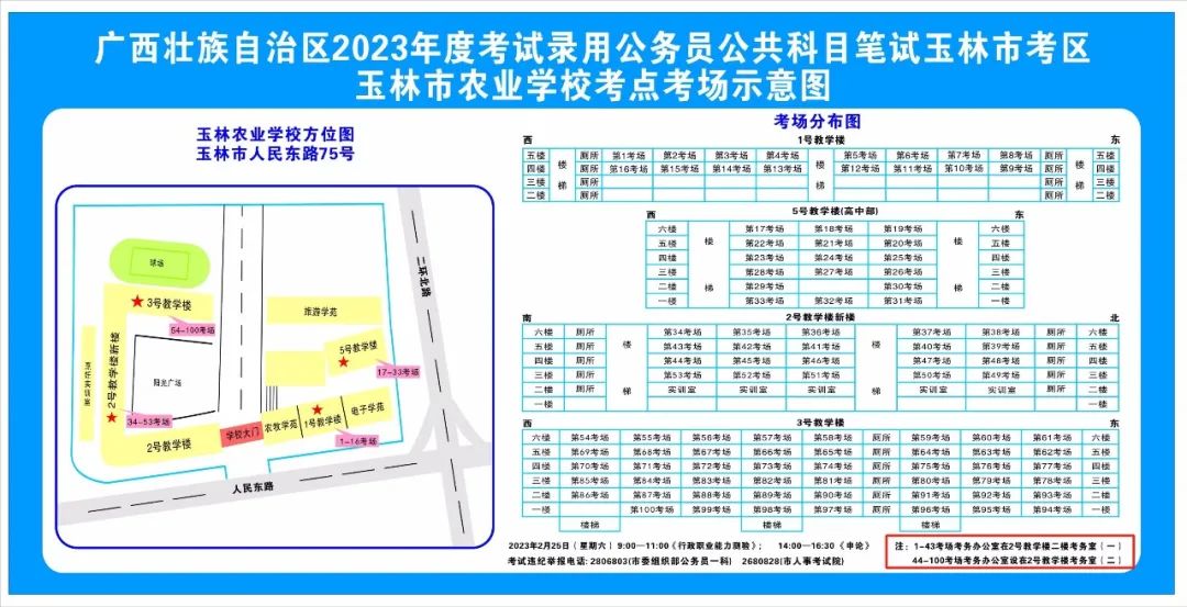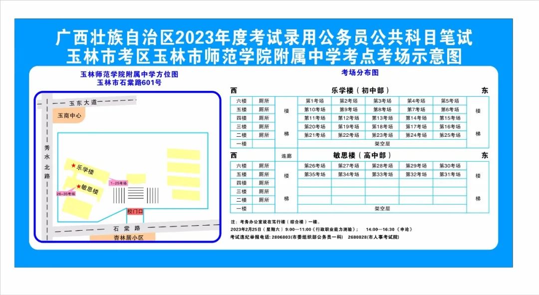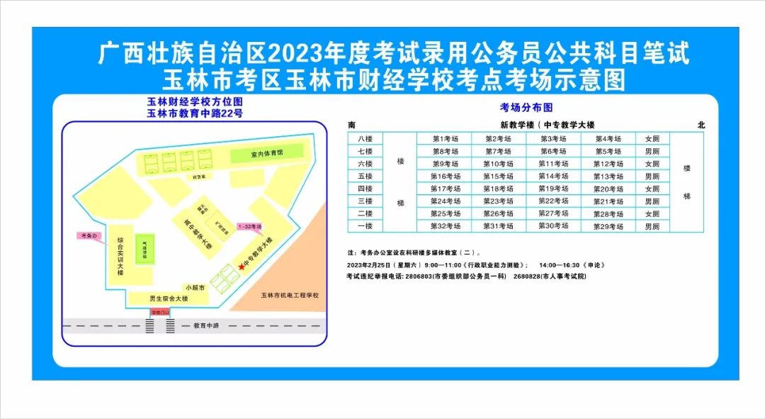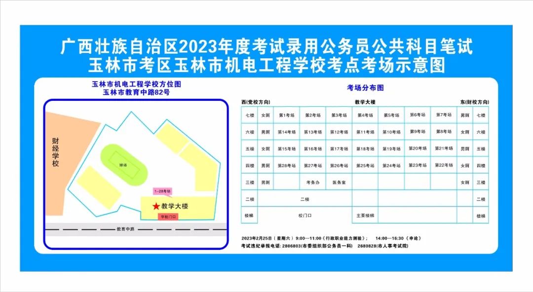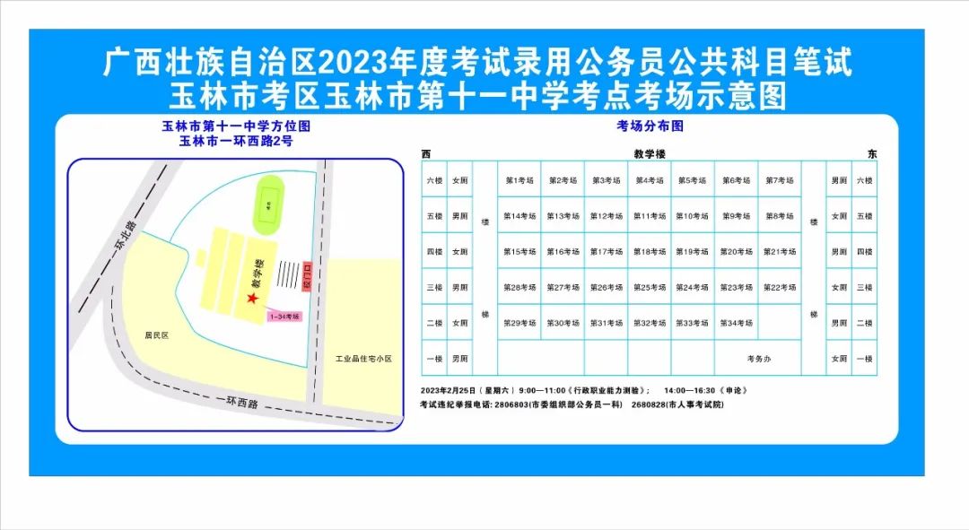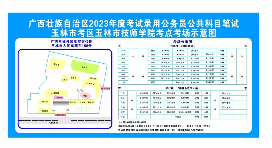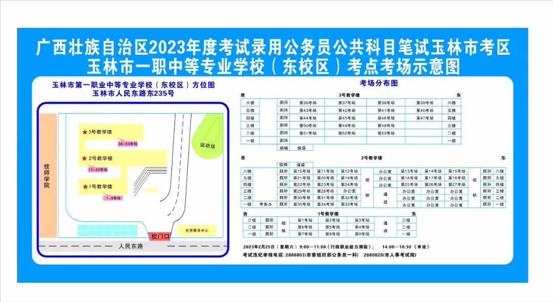 除考試當天考生可以進入考點外,考生不得提前進入考點查看考場(學校將在大門處擺放考場分布示意圖),玉林考區(qū)9個考點的考場布置情況如下: