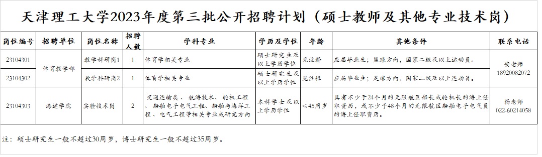 天津理工大學(xué)2023年度第三批公開招聘方案(碩士教師及其他專業(yè)技術(shù)崗位)