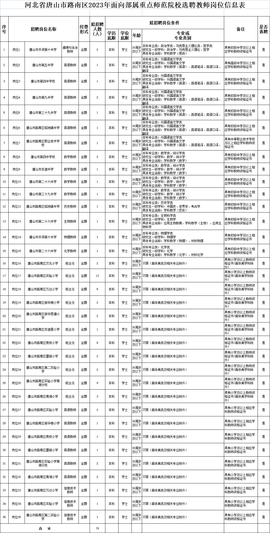 選聘崗位所需要的具體條件按《河北省唐山市路南區(qū)2023年面向部屬重點師范院校選聘教師崗位信息表》要求確定。