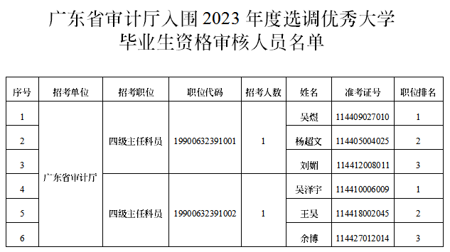 附件:廣東省審計廳入圍2023年度選調(diào)優(yōu)秀大學(xué)畢業(yè)生資格審核人員名單