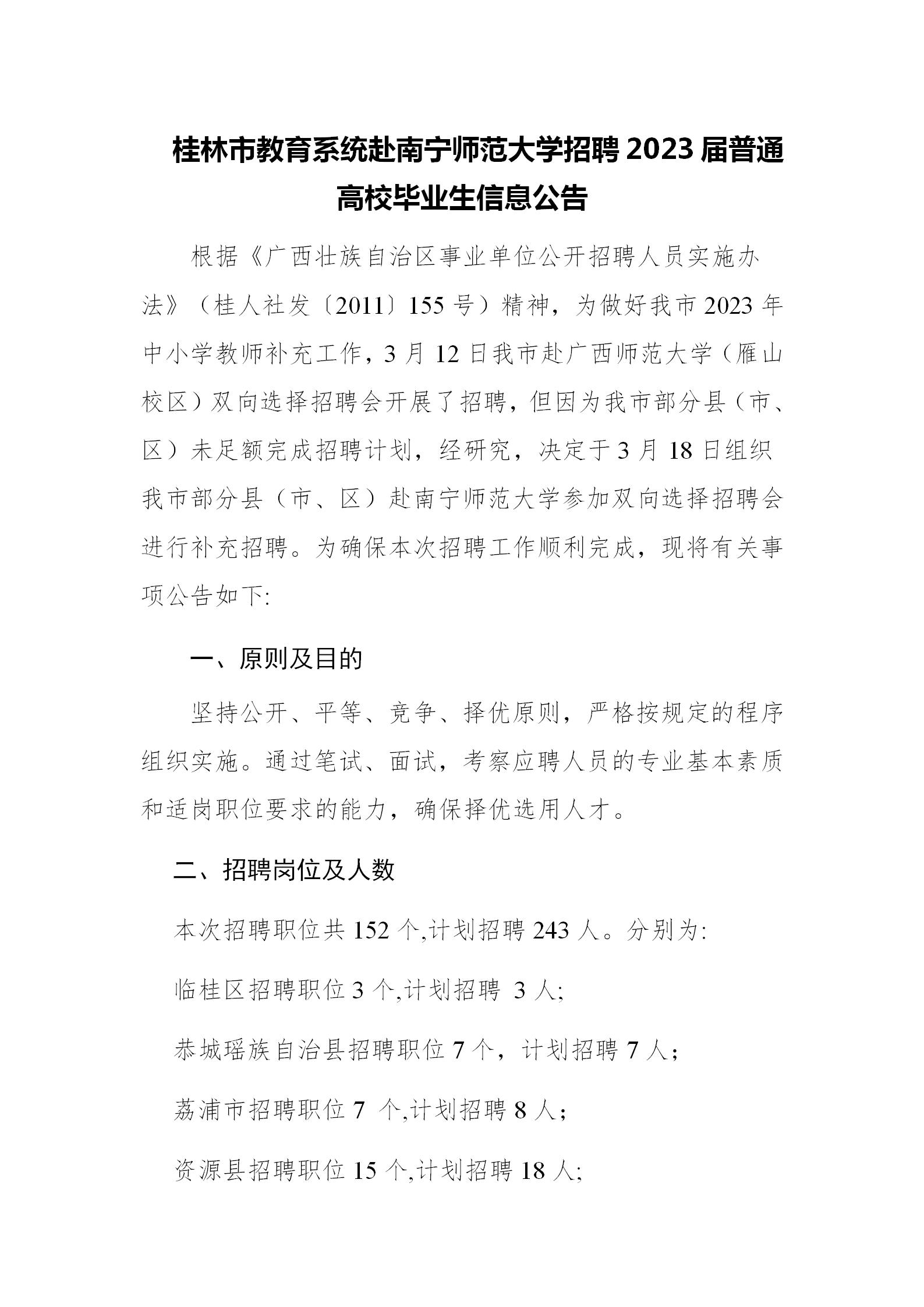 桂林市教育系統(tǒng)赴南寧師范大學(xué)招聘2023屆普通高校畢業(yè)生信息公告