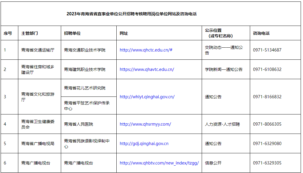 附件3. 2023年青海省省直事業(yè)單位公開招聘考核聘用崗位單位網(wǎng)站及咨詢電話