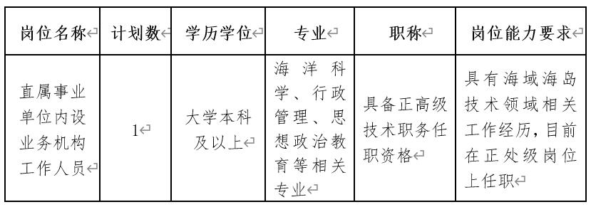 選調崗位為東海局直屬事業(yè)單位內設業(yè)務機構工作人員,選調對象為自然資源部所屬事業(yè)單位在編在職工作人員,選調人數(shù)為1名。崗位具體要求如下: