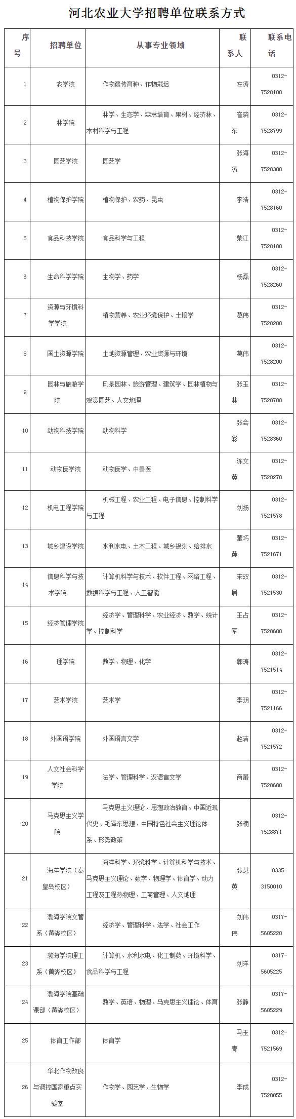 聯(lián)系人:河北農(nóng)業(yè)大學人事處陳老師、彭老師