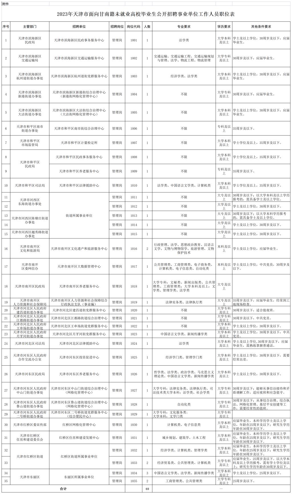 (四)其他條件詳見《2023年天津市面向甘南籍未就業(yè)高校畢業(yè)生公開招聘事業(yè)單位工作人員職位表》。