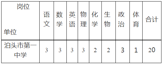 經市政府批準,泊頭市第一中學公開招聘教師20名。