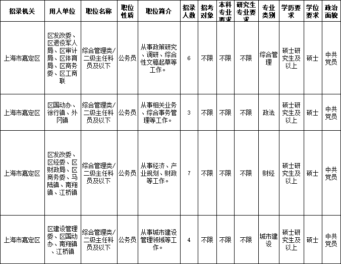 嘉定區(qū)面向國內(nèi)部分高校招錄碩士研究生及以上學歷的應屆大學畢業(yè)生,為嘉定現(xiàn)代化新型城市、世界級汽車產(chǎn)業(yè)中心核心承載區(qū)、上??苿?chuàng)中心重要承載區(qū)建設厚植人才優(yōu)勢,提供源源不斷的黨政人才支撐。