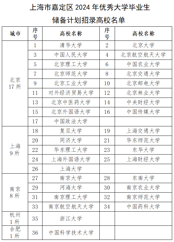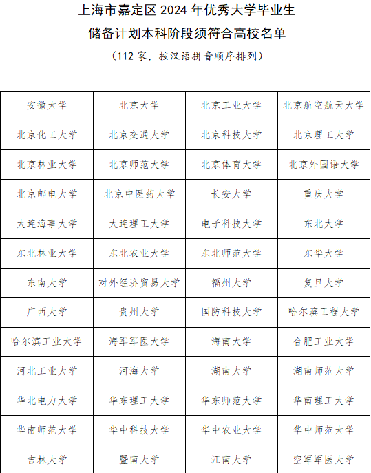 上海市嘉定區(qū)2024年優(yōu)秀大學畢業(yè)生儲備計劃(選調(diào)生)招錄公告