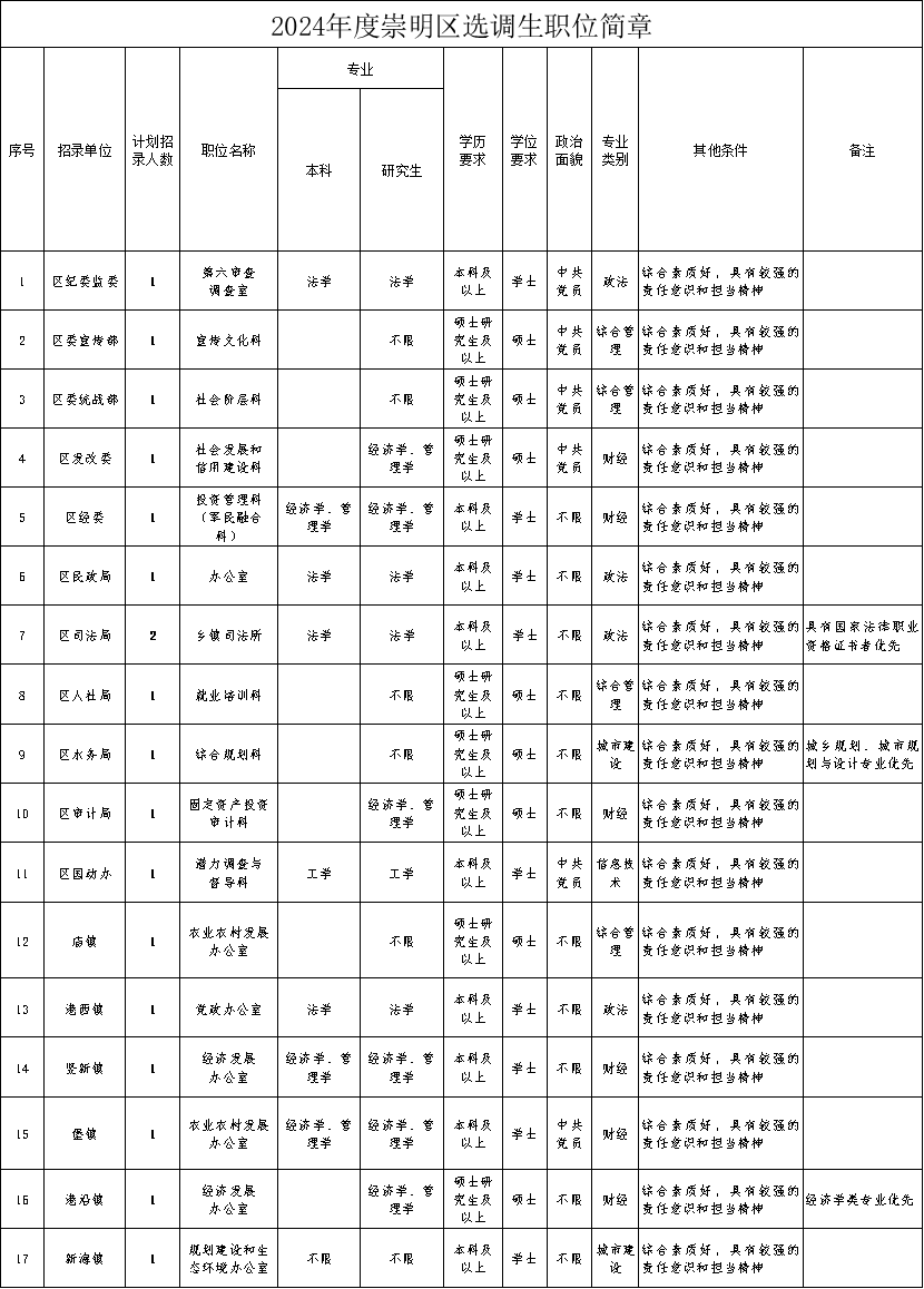 2024年上海市崇明區(qū)選調(diào)生招錄18人公告