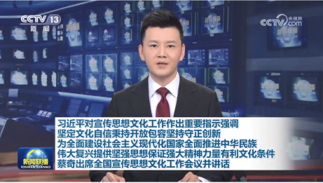 習近平強調(diào),新時代新征程,世界百年未有之大變局加速演進,中華民族偉大復興進入關(guān)鍵時期,戰(zhàn)略機遇和風險挑戰(zhàn)并存,宣傳思想文化工作面臨新形勢新任務,必須要有新氣象新作為。要堅持以新時代中國特色社會主義思想為指導,全面貫徹黨的二十大精神,聚焦用黨的創(chuàng)新理論武裝全黨、教育人民這個首要政治任務,圍繞在新的歷史起點上繼續(xù)推動文化繁榮、建設文化強國、建設中華民族現(xiàn)代文明這一新的文化使命,堅定文化自信,秉持開放包容,堅持守正創(chuàng)新,著力加強黨對宣傳思想文化工作的領(lǐng)導,著力建設具有強大凝聚力和引領(lǐng)力的社會主義意識形態(tài),著力培育和踐行社會主義核心價值觀,著力提升新聞輿論傳播力引導力影響力公信力,著力賡續(xù)中華文脈、推動中華優(yōu)秀傳統(tǒng)文化創(chuàng)造性轉(zhuǎn)化和創(chuàng)新性發(fā)展,著力推動文化事業(yè)和文化產(chǎn)業(yè)繁榮發(fā)展,著力加強國際傳播能力建設、促進文明交流互鑒,充分激發(fā)全民族文化創(chuàng)新創(chuàng)造活力,不斷鞏固全黨全國各族人民團結(jié)奮斗的共同思想基礎(chǔ),不斷提升國家文化軟實力和中華文化影響力,為全面建設社會主義現(xiàn)代化國家、全面推進中華民族偉大復興提供堅強思想保證、強大精神力量、有利文化條件。