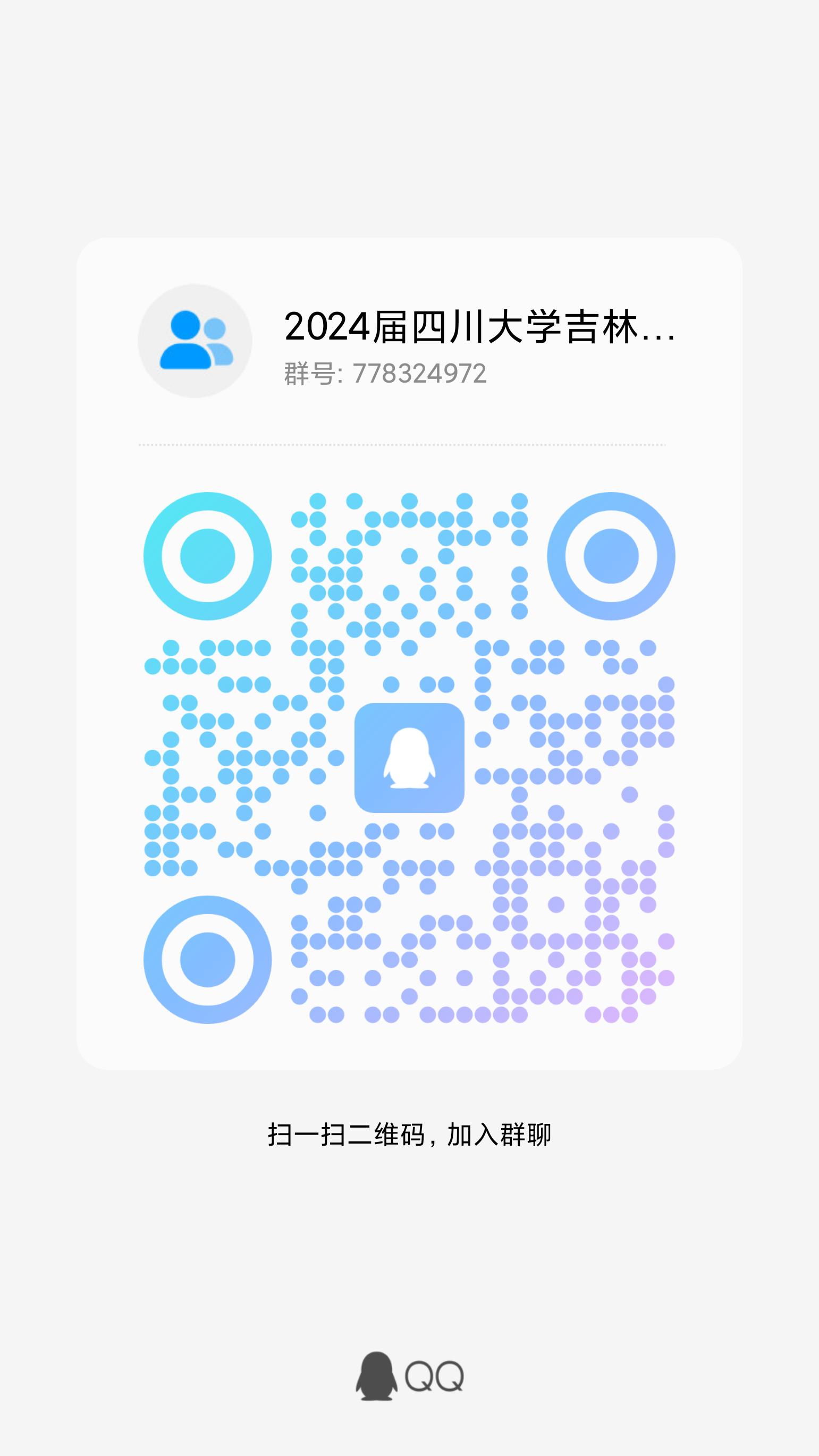 三、為了方便后續(xù)相關(guān)事宜的通知,請有意向報考吉林選調(diào)的同學(xué)加入2024屆四川大學(xué)吉林選調(diào)QQ群(群號:778324972)。