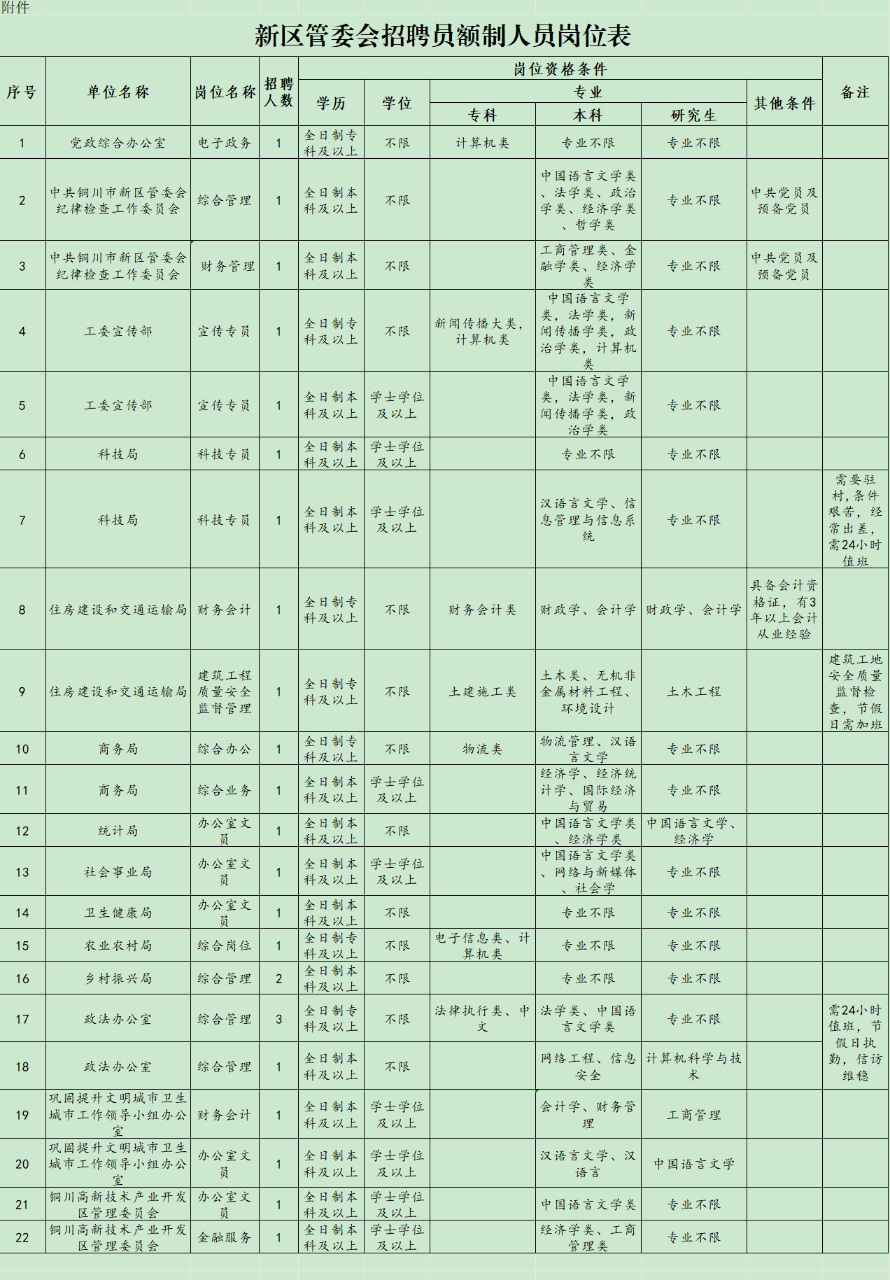 附件:新區(qū)管委會招聘員額制人員崗位表