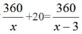 【答案】D【解析】本題求筆記本零售價為多少元,設每個筆記本的零售價為x元,則批發(fā)價為(x-3)元。根據(jù)如果按批發(fā)價購買,則每個筆記本能便宜3元,且恰好能多購買20個??芍磁l(fā)價購買的筆記本數(shù)量比按零售價購買多20個,故可列式為