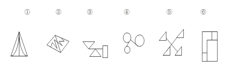 例題:把下面的六個(gè)圖形分為兩類,使每一類圖形都有各自的共同特征或規(guī)律,分類正確的一項(xiàng)是: