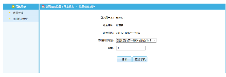 在此頁面可以完成對考生個人信息的修改。