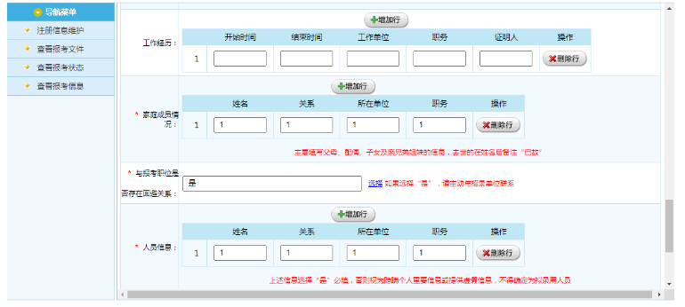 填寫報名信息必須真實(shí)、準(zhǔn)確、完整,報考者提交的有關(guān)申請材料或者信息不實(shí)的,認(rèn)定為報名無效,終止錄用程序;信息填報不全導(dǎo)致未通過招錄機(jī)關(guān)資格審查的,后果由報考者自負(fù)。對學(xué)習(xí)和工作經(jīng)歷欄目,應(yīng)按時間先后順序,從高中開始,填寫何年何月至何年何月在何單位(學(xué)校)工作(學(xué)習(xí))、任何職。對大學(xué)期間的學(xué)習(xí)經(jīng)歷,須填寫清楚學(xué)校、院系、專業(yè)名稱。