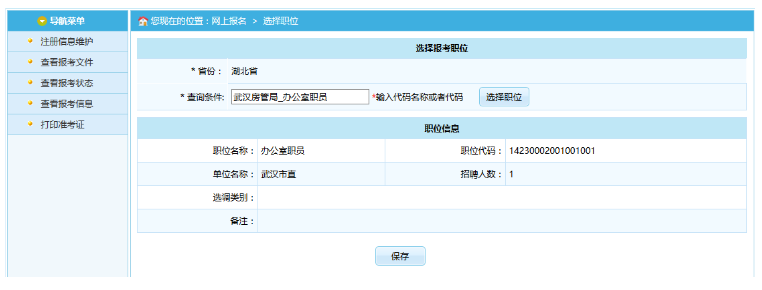 通過點(diǎn)擊“選擇職位”選項(xiàng),可以跳轉(zhuǎn)到選擇報考職位界面,如下圖所示: