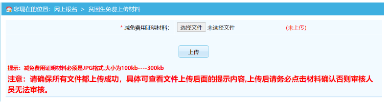 首先按要求上傳相關(guān)申請材料。