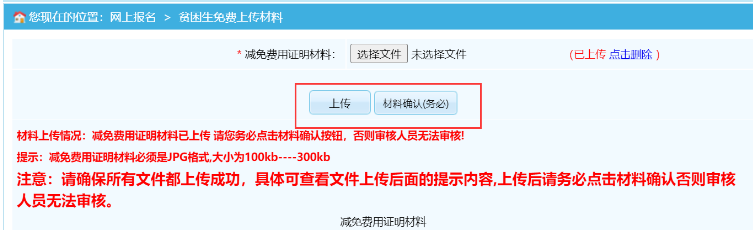 上傳后,請務(wù)必點(diǎn)擊“材料確認(rèn)”,等待工作人員審核。