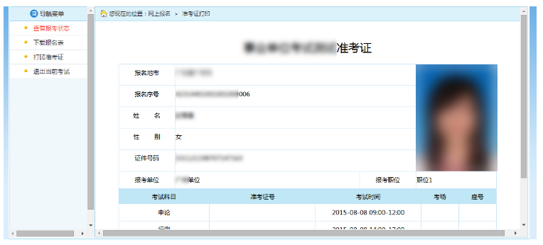 通過點(diǎn)擊系統(tǒng)導(dǎo)航菜單的“打印準(zhǔn)考證”選項(xiàng),可進(jìn)入準(zhǔn)考證打印頁面,如下圖所示: