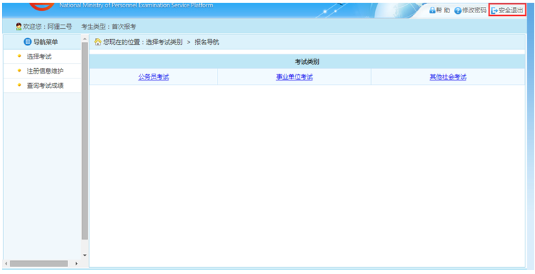 通過點(diǎn)擊系統(tǒng)右上角的“安全退出”按鈕,如下圖所示: