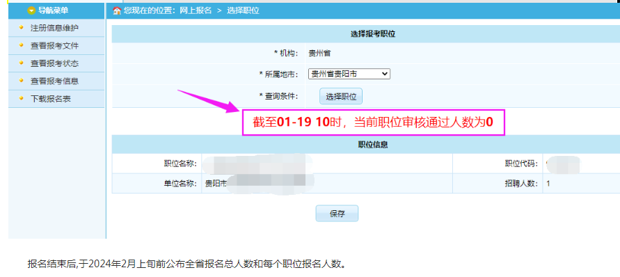 貴州省2024年度公務(wù)員招錄考試職位審核通過(guò)人數(shù)查詢操作步驟