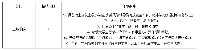 ?。ㄋ模┹o導(dǎo)員:中共黨員,具有碩士及以上學(xué)歷學(xué)位,熱愛學(xué)生工作,作風(fēng)正派、樂于奉獻(xiàn)。